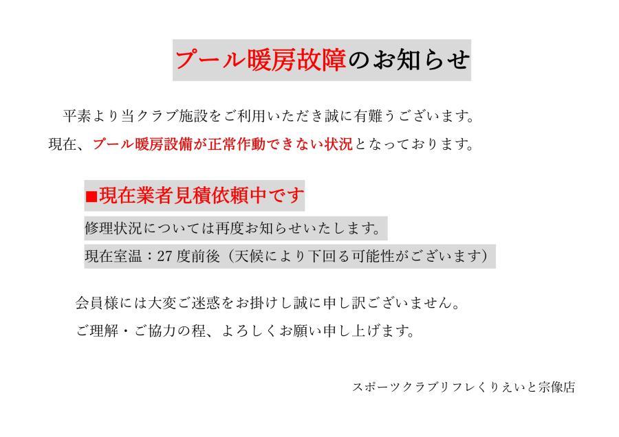 プール暖房機器故障のお知らせ